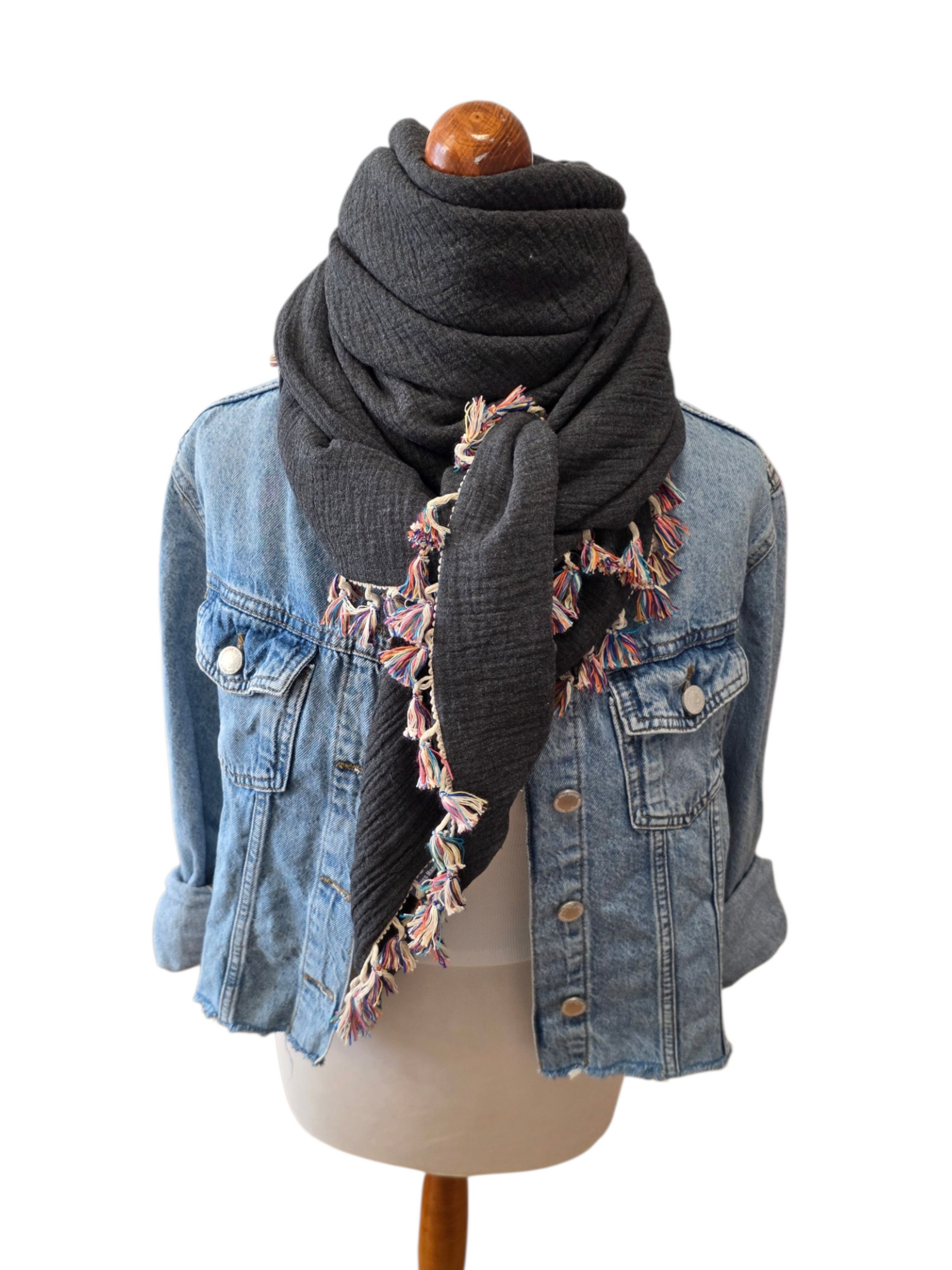 Dreieckstuch Damen Iva, Schal Damen, Musselintuch, Anthrazit melange