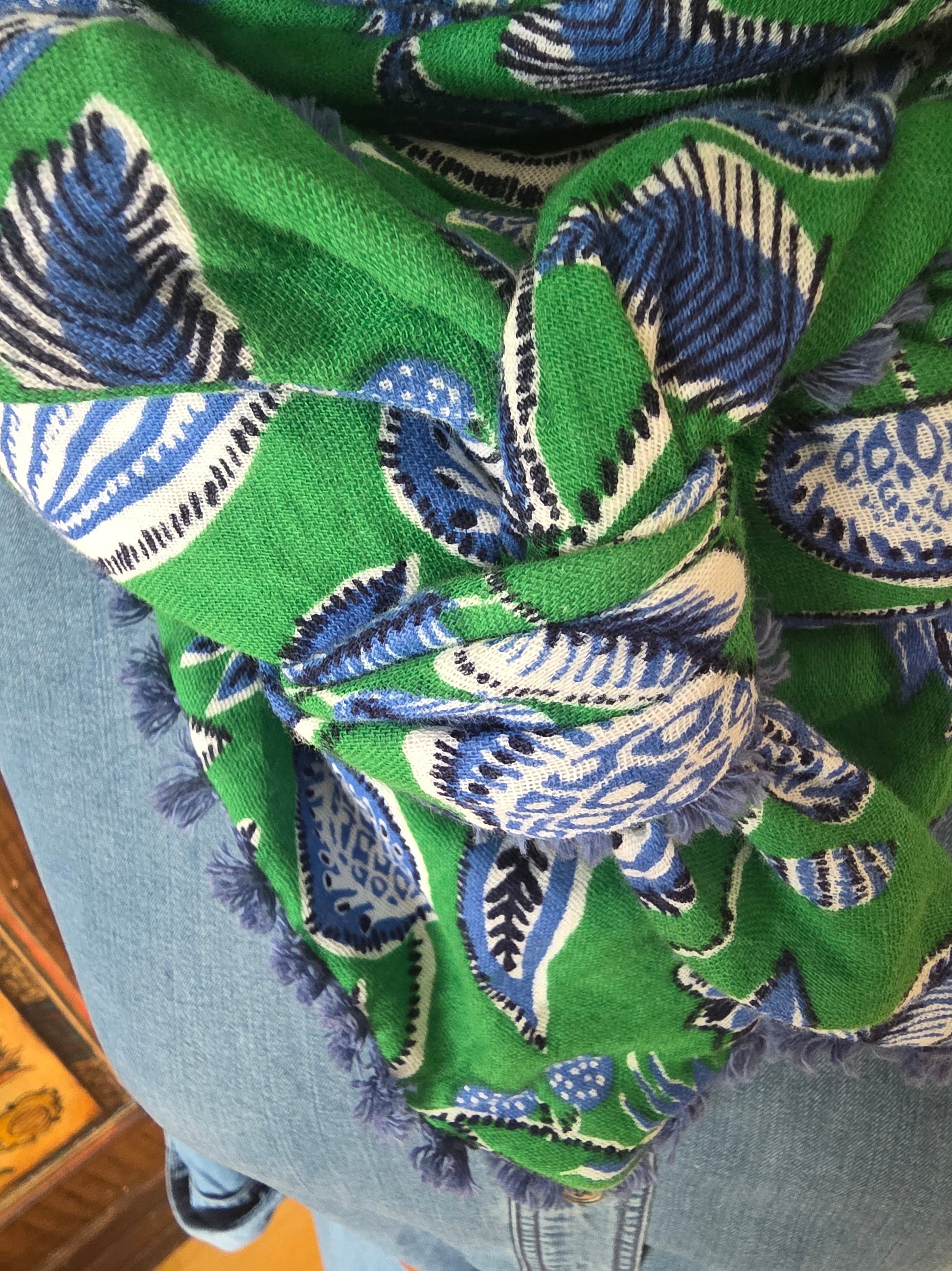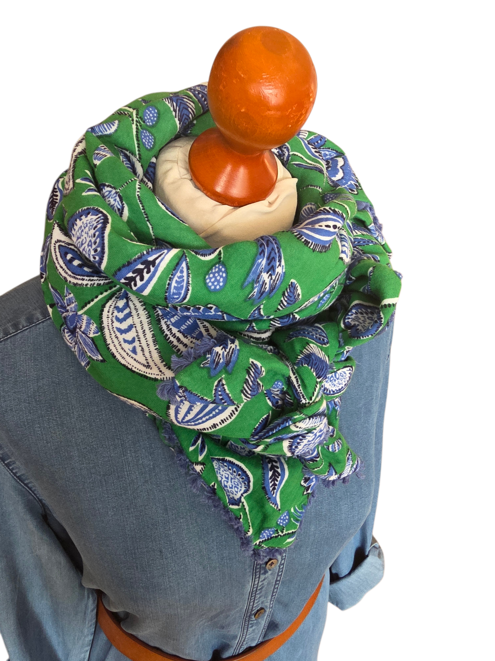 Dreieckstuch Damen Aurora, Schal Damen, Musselintuch, grün, Jeansblau