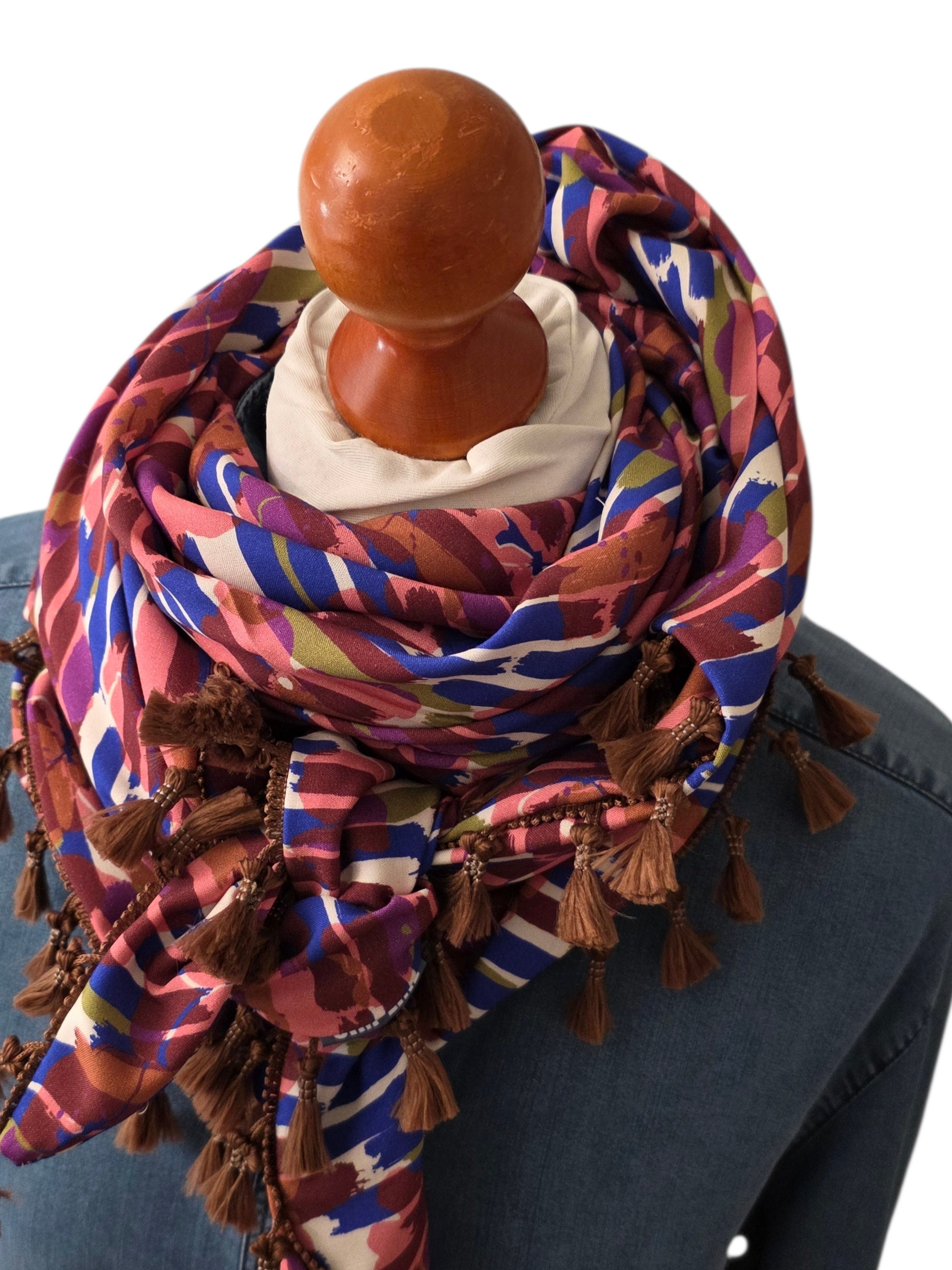 Dreieckstuch Damen Lyra, Schal Damen, royalblau, braun, offwhite, pink, peach, Olivgrün