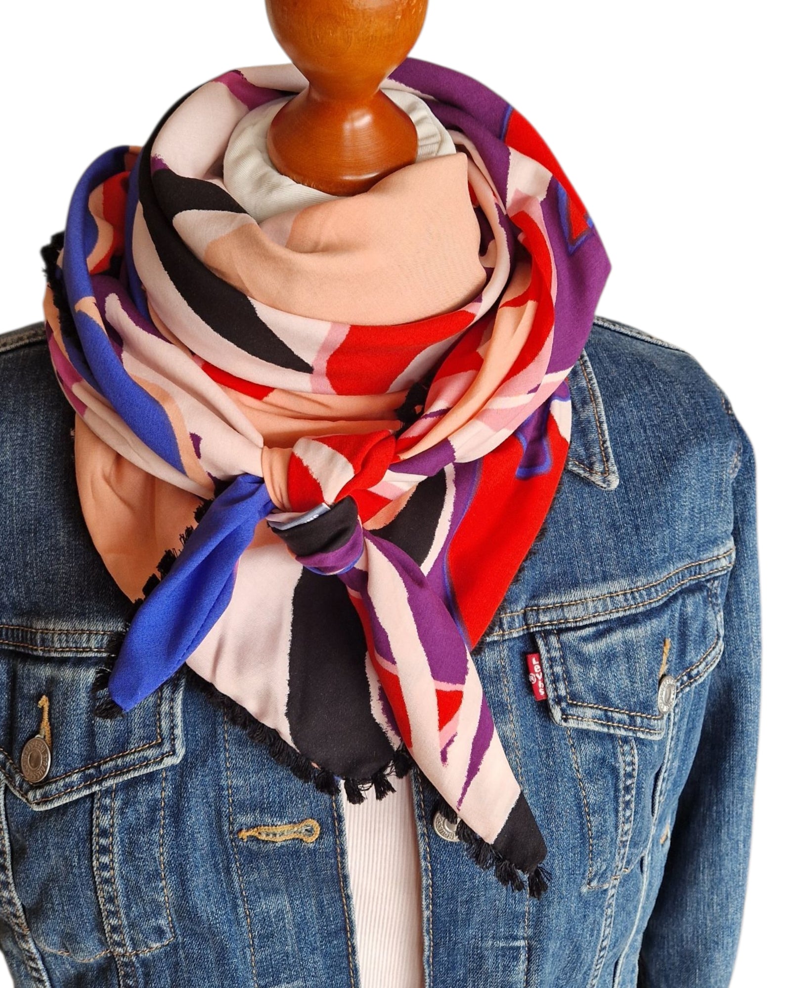 Dreieckstuch Damen Maelle, Schal Damen, rot, peach, königsblau, lila, schwarz
