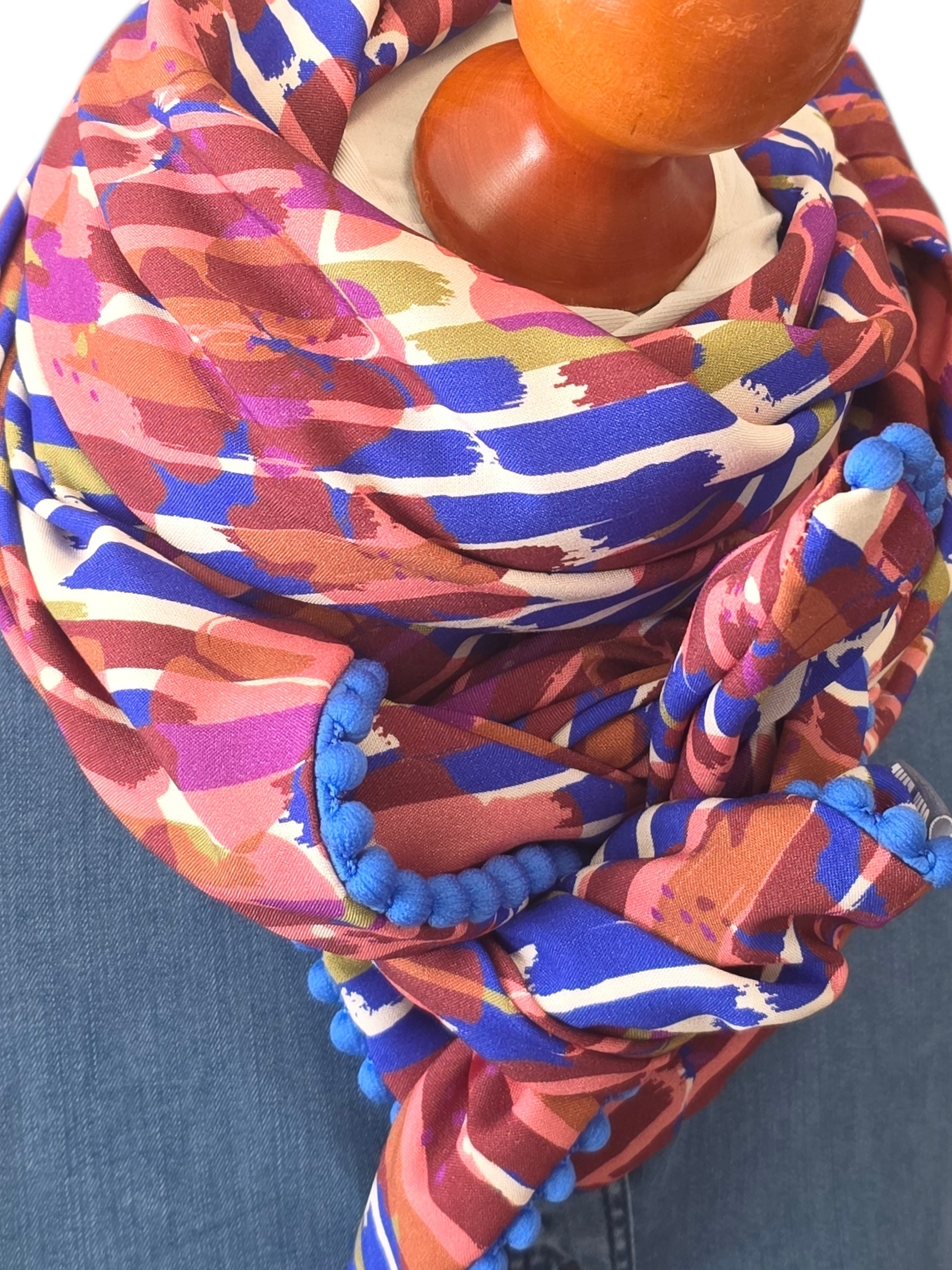 Dreieckstuch Damen Siria, Schal Damen, royalblau, grün, braun, offwhite, peach