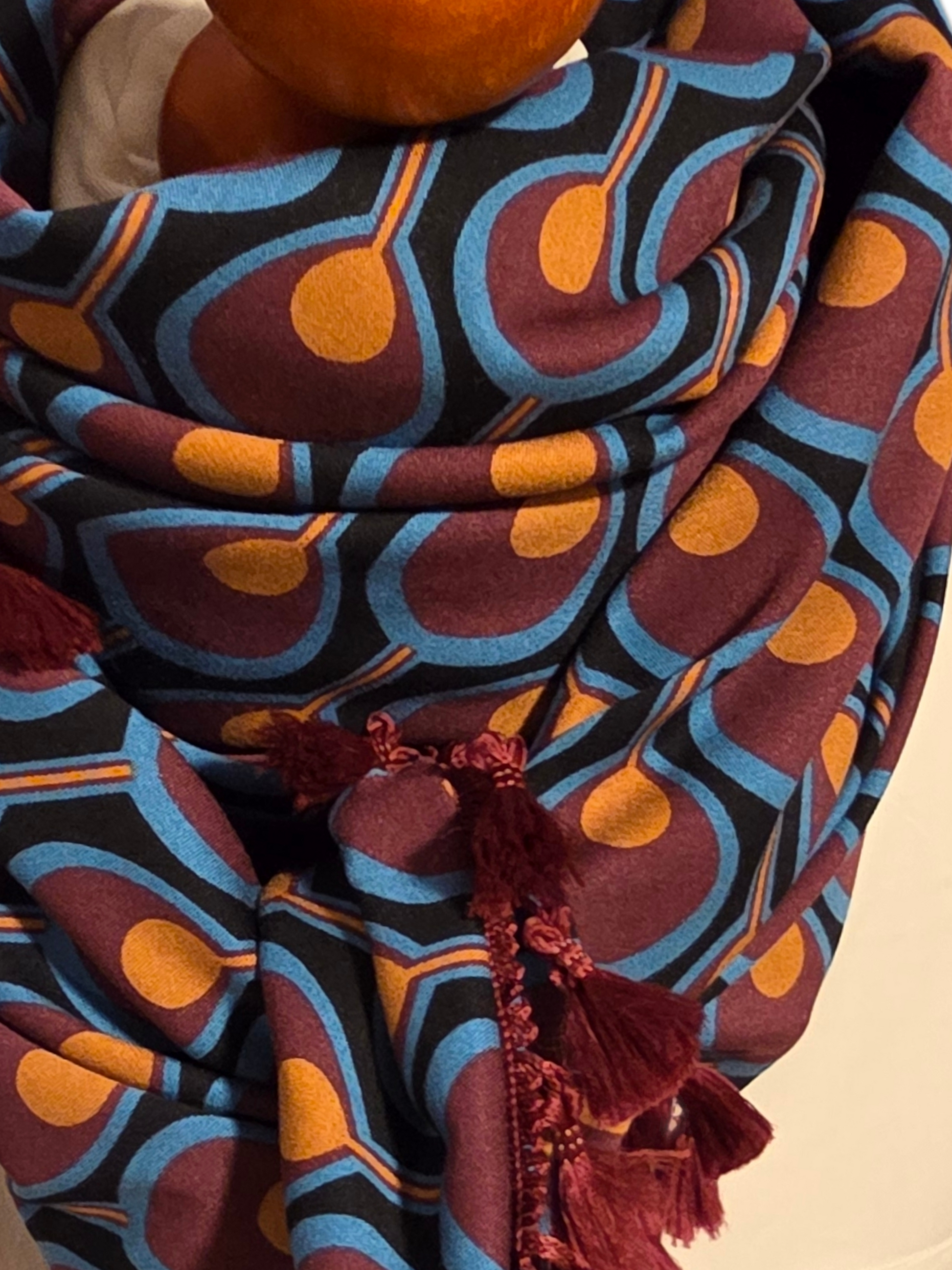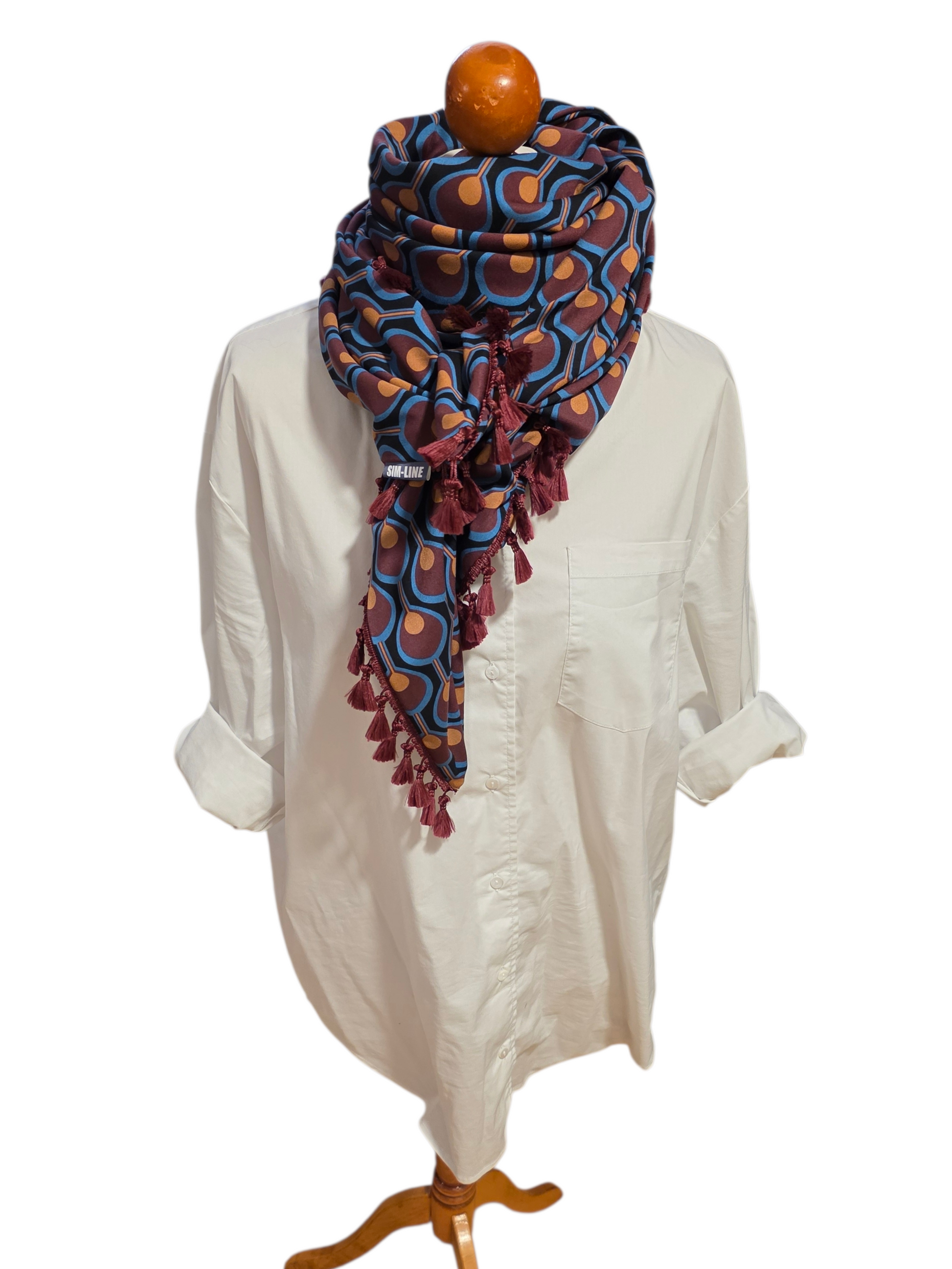 Erweitern Sie Ihre Garderobe mit dem einzigartigen Dreieckstuch Damen Sybille. Das 100% festes Twill-Viskose-Material fühlt sich wohl an und die doppelt genähte Verarbeitung garantiert lange Haltbarkeit. Mit tollem Muster, und einer passenden bordeaux Quastenborte , ist dieses Tuch perfekt für jeden Anlass.