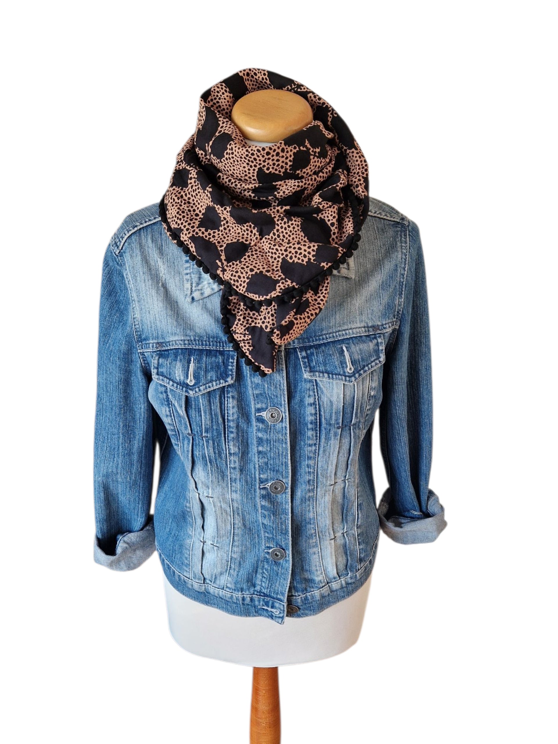 Dreieckstuch Damen Vicky, Schal Damen, beige-schwarz