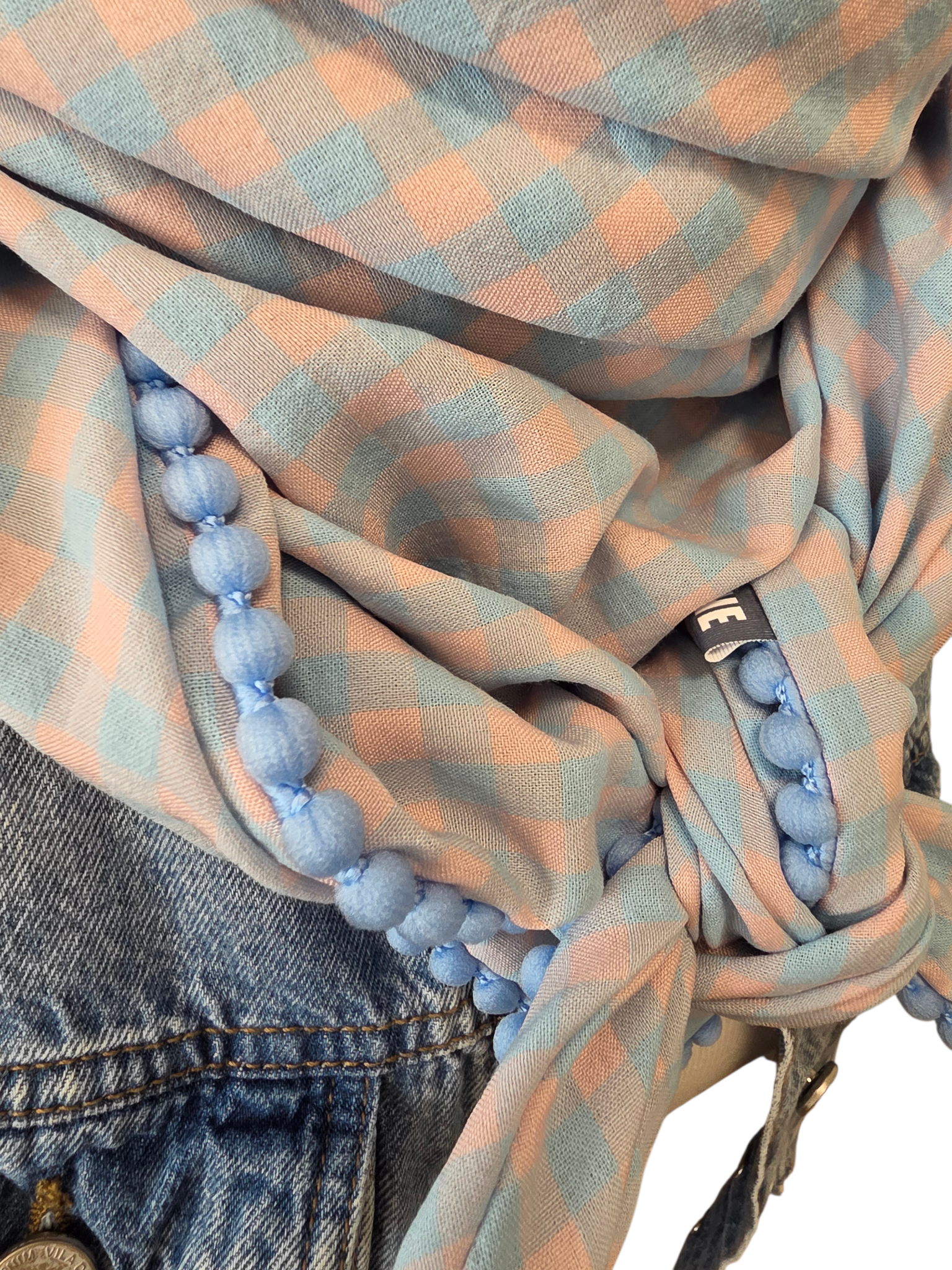 Dreieckstuch Marietta, Schal Damen, Karomuster peach hellblau