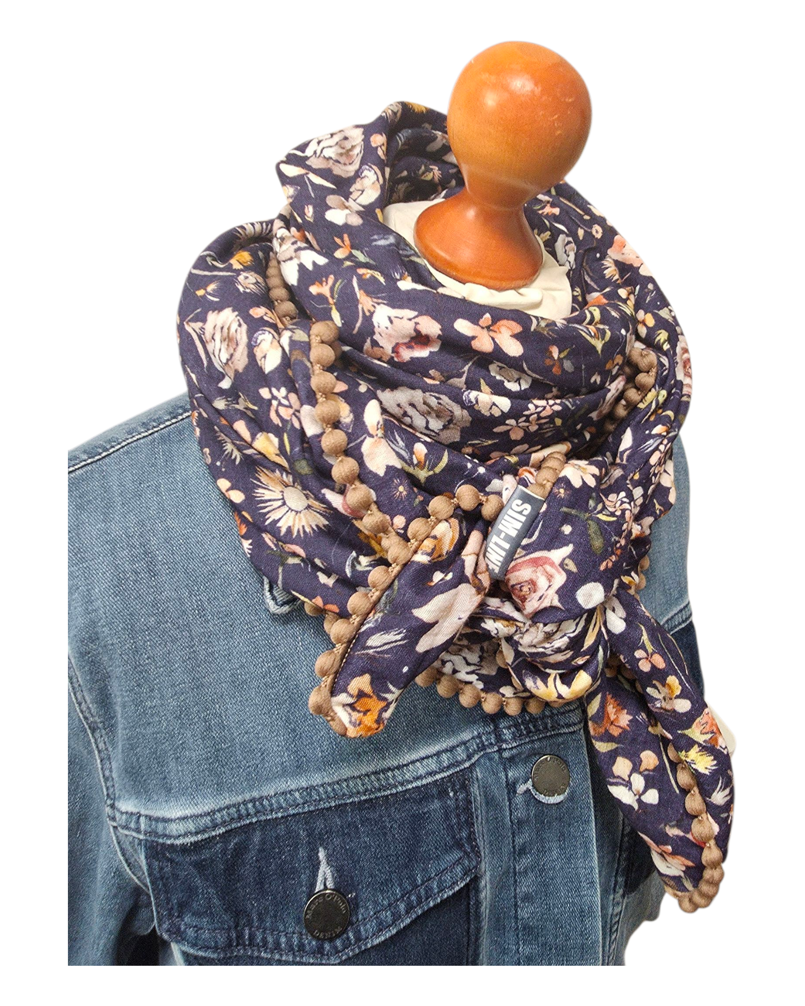 Sehr schönes weiches Musselintuch in Dreiecksform, doppelt genäht, in marineblau mit Blumen in hellrosa, Olivgrün. beige. Das Tuch ist kuschelig und in super Qualität. Durch die Dreiecksform sitzt perfekt am Hals und durch das es doppelgenäht ist verzieht sich nicht beim waschen. Ein Unikat, das sehr Freude bereitet. Stylisch und einzigartig.