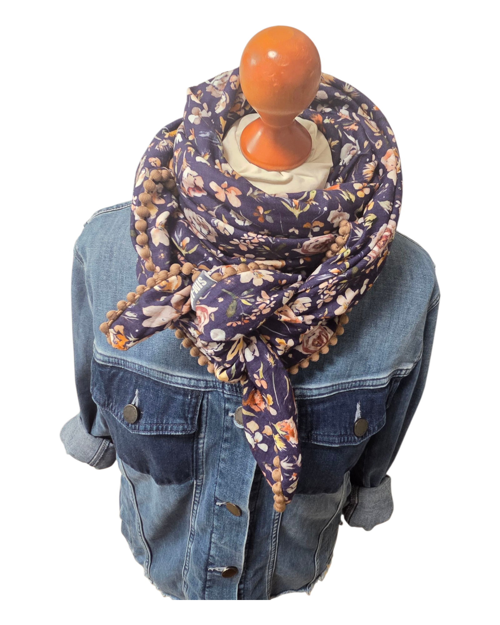 Dreieckstuch Damen Christine, Schal Damen, Musselintuch , Blumen, marineblau