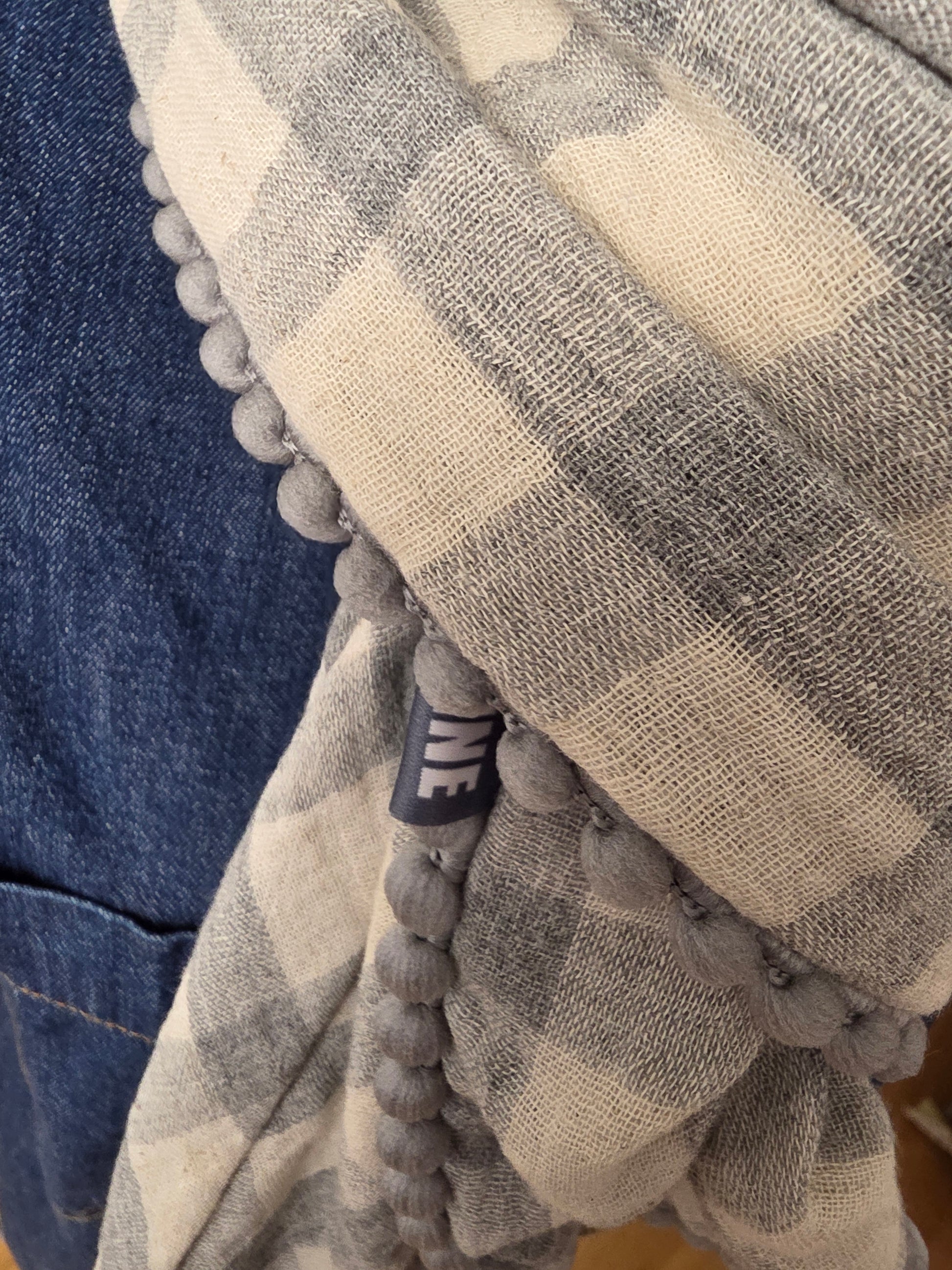 Elegantes Dreieckstuch aus feinem Musselin mit klassischem Karomuster in Offwhite und Hellgrau. Das vielseitige Accessoire besticht durch seine weiche, kuschelige Haptik und hochwertige Doppelnaht-Verarbeitung für langlebigen Tragekomfort. Das Tuch erfüllt den strengen Oeko-Tex 100 Standard und garantiert damit Schadstofffreiheit und höchste Hautverträglichkeit. Perfekt als Schultertuch, Halstuch – ein zeitloses Piece für jeden Anlass. Schöne Borte in hellgrau.